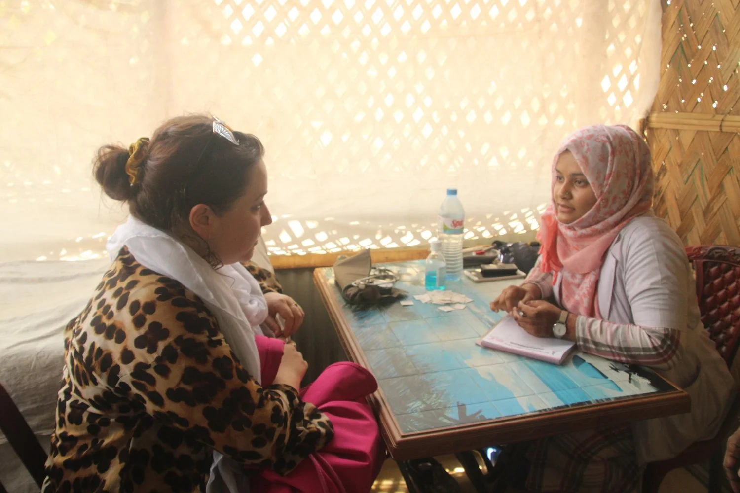 Meeting with United Purpose healthcare workers at the Rohingya refugee camp, Bangladesh, 2018.